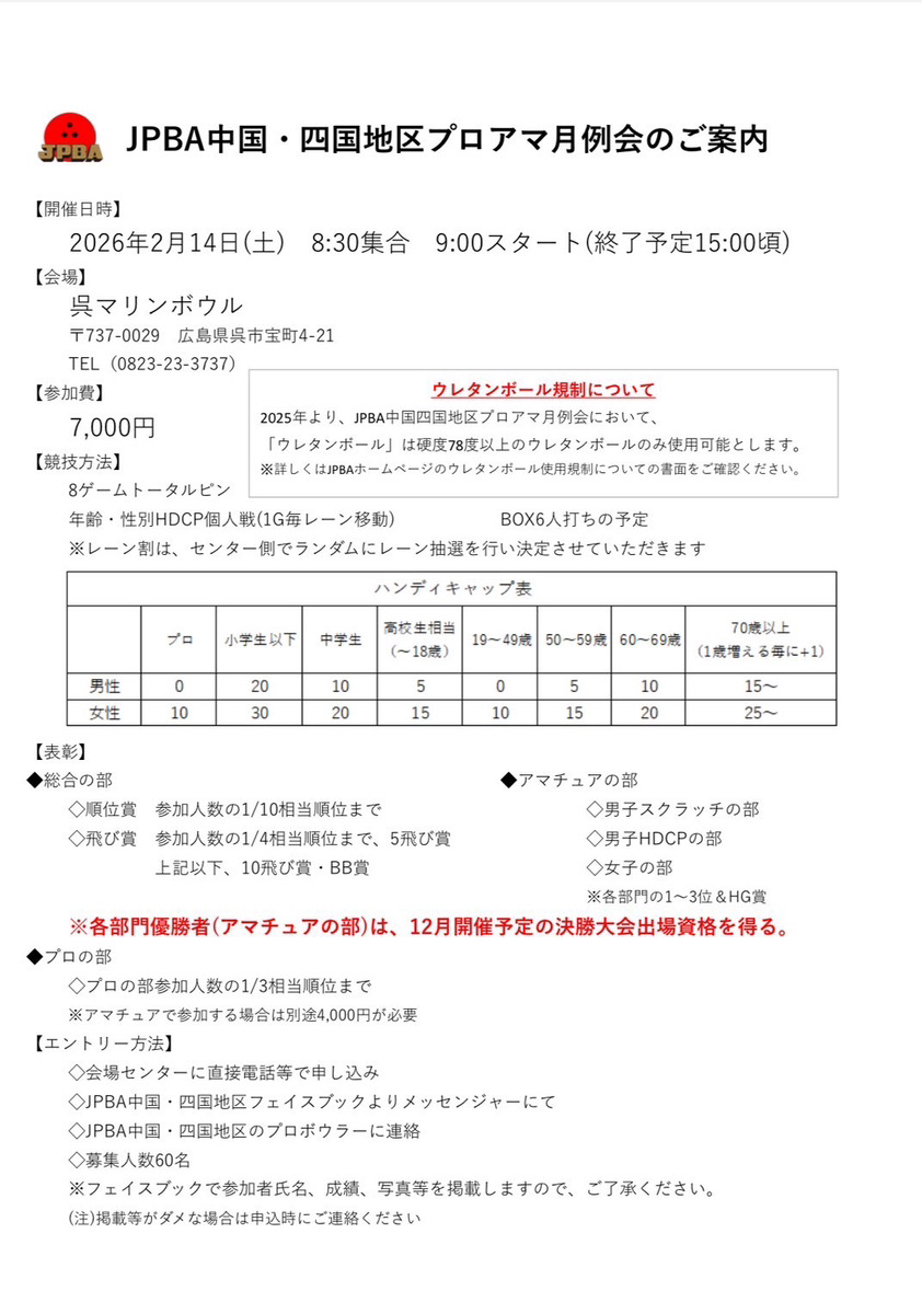 2026.1月度マリンボウルスケジュール