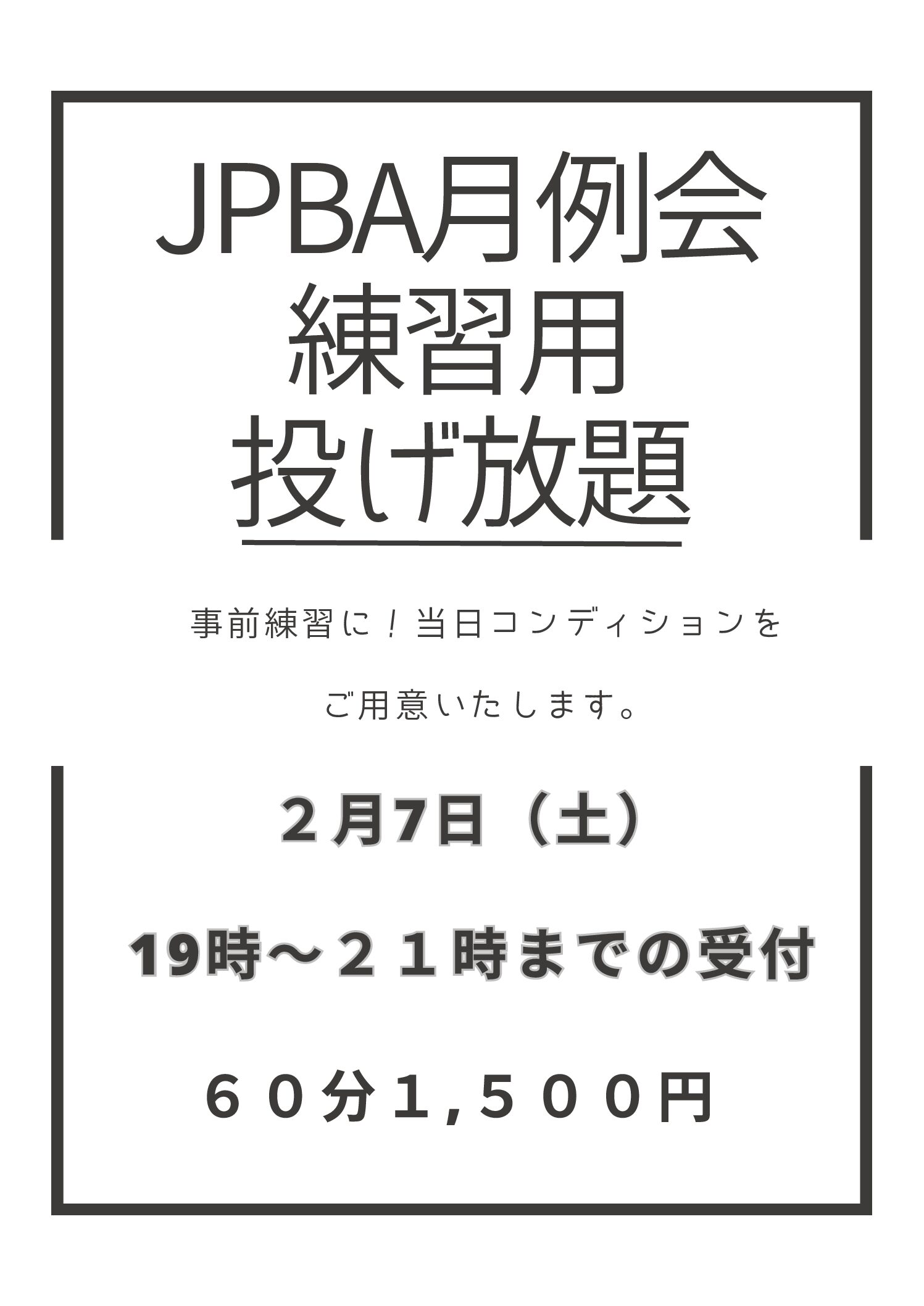 2月7日(土)19時~21時までの受付:中国・四国地区プロアマ月例会練習用投げ放題