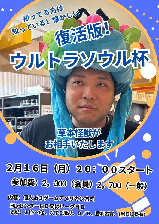2月16日(月)開催:懐かしの「ウルトラソウル杯」