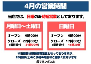 4月営業時間のお知らせ