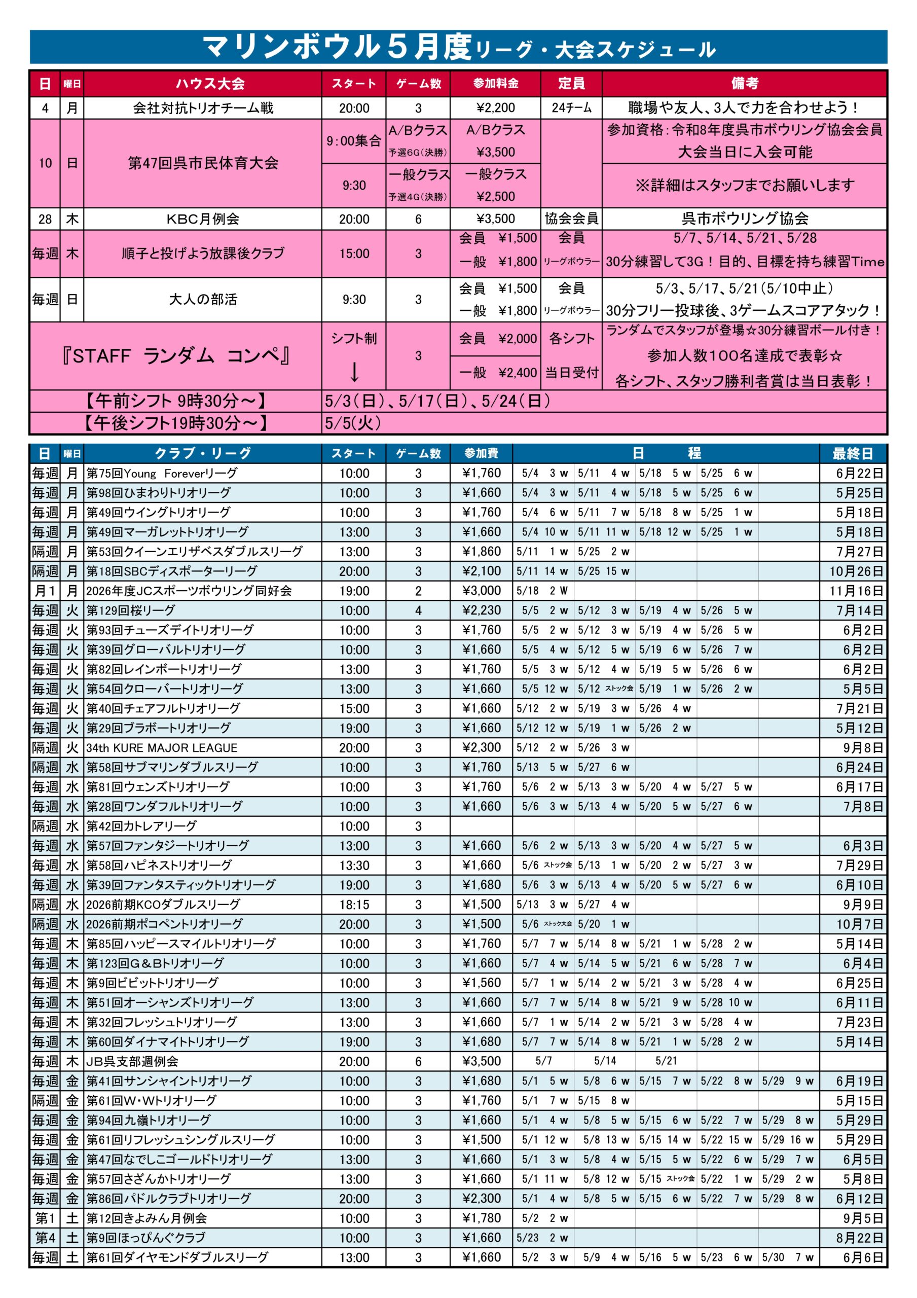 2026.3月度マリンボウルスケジュール