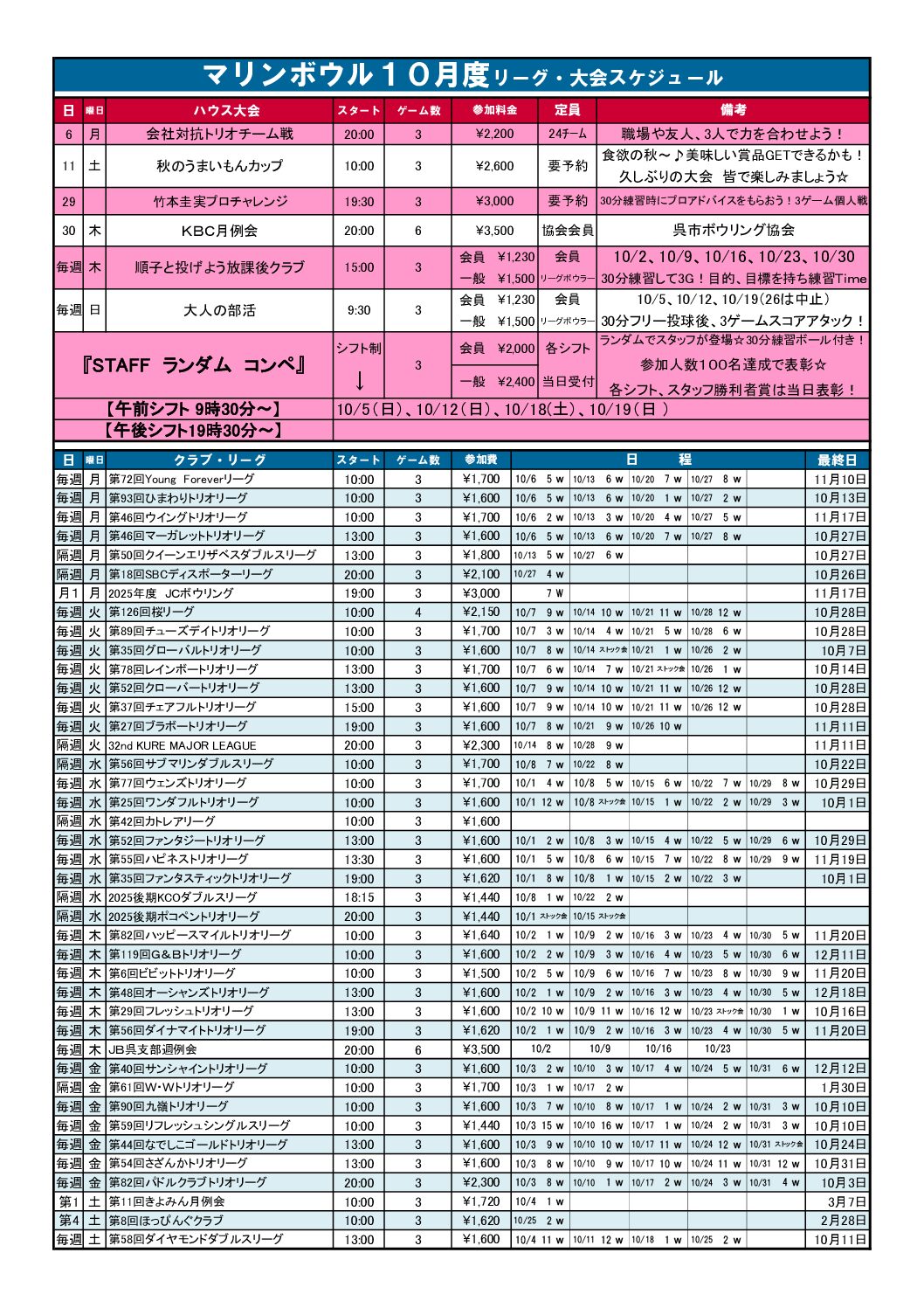 2025.10月度マリンボウルスケジュール 暑い暑いと言いながら 気づけばもう秋ですね〜 朝晩が少し過ごしやすくなり、昨夜は 鈴虫がないていました 月見シリーズもよく目にするようになり 月見バーガー🍔が食… 続きを読む 10月度リーグ&大会スケジュール